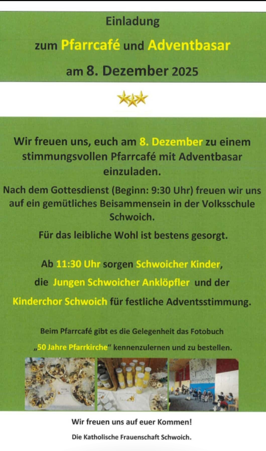 Einladung der Pfarre zum Pfarrcafé mit Adventbasar