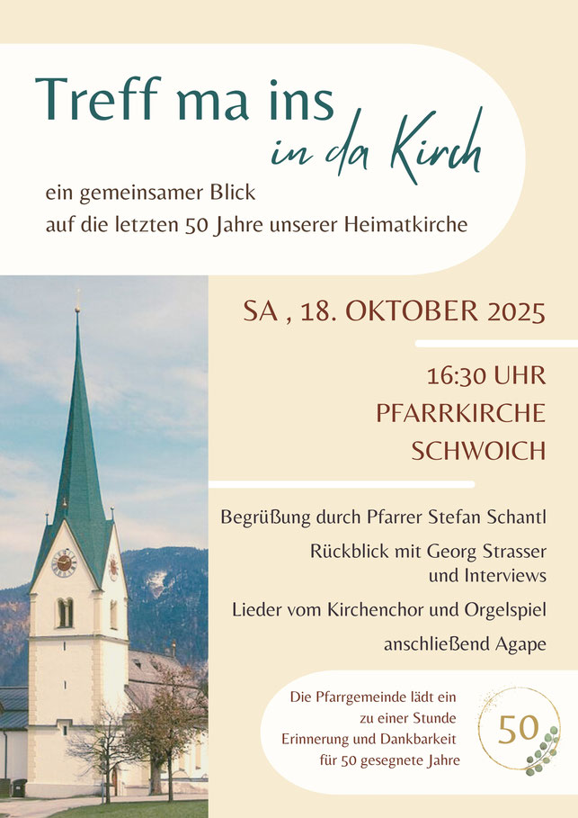 Treff ma ins in da Kirch - ein Rückblick auf 50 Jahre "neue" Pfarrkirche Schwoich